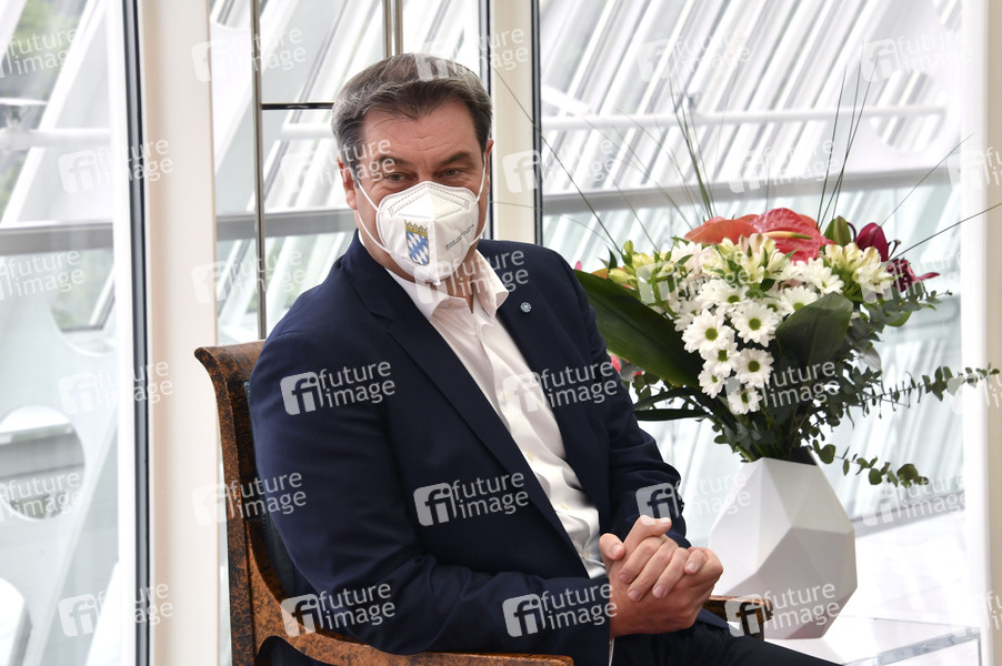 Markus Söder bei einem persönlichen Austausch des bayerischen Ministerpräsidenten mit dem österreichischen Bundeskanzler in der Staatskanzlei. München, 11.05.2021