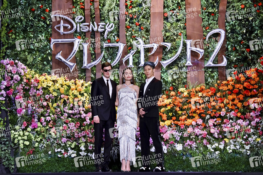 Sam Riley, Angelina Jolie und Miyavi bei der Premiere des Kinofilms 'Maleficent: Mächte der Finsternis / Maleficent: Mistress of Evil' in der Roppongi Hills Arena. Tokio, 03.10.2019