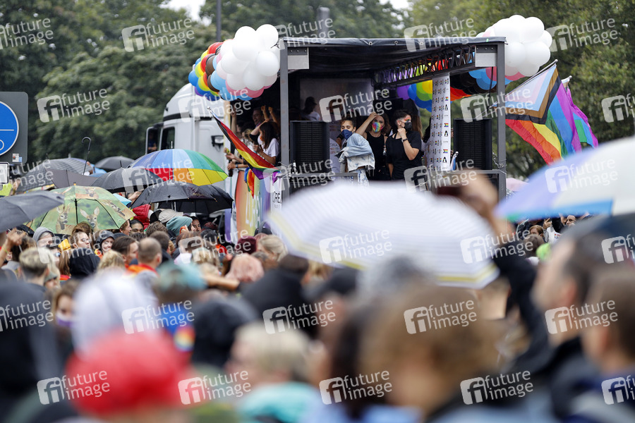 Etwa 10.000 Menschen waren auf der Christopher-Street-Day-Parade in Köln. Mit dem Marsch am Rhein sollte unter anderem für die Rechte von Schwulen, Lesben, Bisexuellen und Transgender demonstriert werden. Köln, 29.08.2021