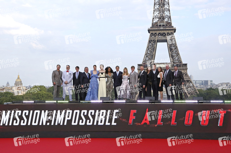 Henry Cavill, Christopher McQuarrie, Michelle Monaghan, Vanessa Kirby, Angella Bassett, Jim Gianopulos, Tom Cruise, Caspar Phillipson, Alix Benezech, Rebecca Ferguson, Simon Pegg und Team bei der Weltpremiere des Kinofilms 'Mission: Impossible - Fallout' im Palais de Chaillot. Paris, 12.07.2018