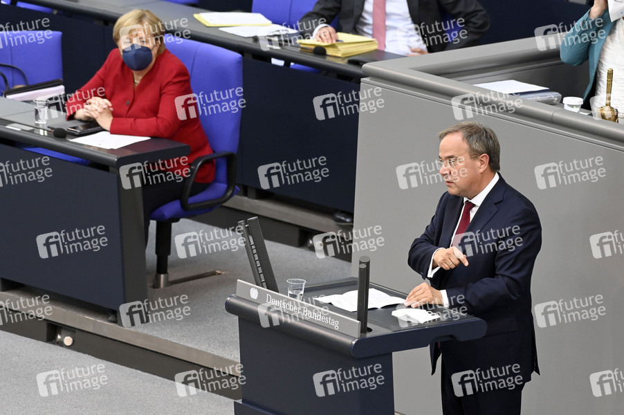 Angela Merkel und Armin Laschet in der 238. Sitzung des Deutschen Bundestages im Reichstagsgebäude. Berlin, 25.08.2021