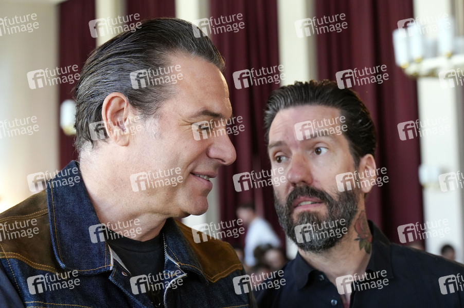 Sascha Vollmer und Alec Völkel von The BossHoss bei der Verleihung der Ehrendoktorwürde an Arnold Schwarzenegger in Anerkennung seiner bedeutenden Beiträge im Bereich Governance, insbesondere durch seine Arbeit im Bereich Nachhaltigkeit und bürgerschaftliches Engagement in der Hertie School. Berlin, 17.09.2024