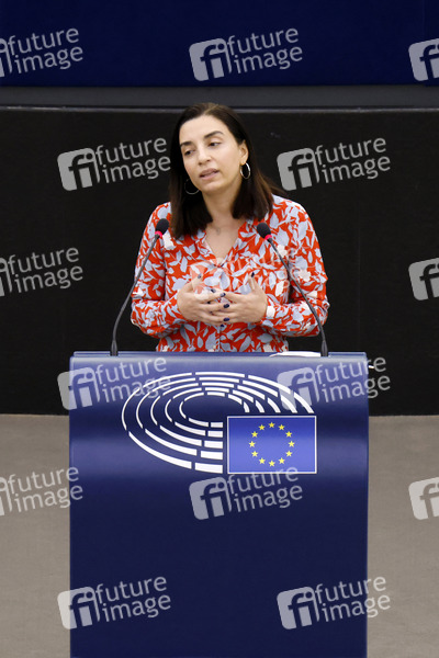 Evin Incir im Plenarsaal des Europäischen Parlaments. Straßburg, 10.03.2022