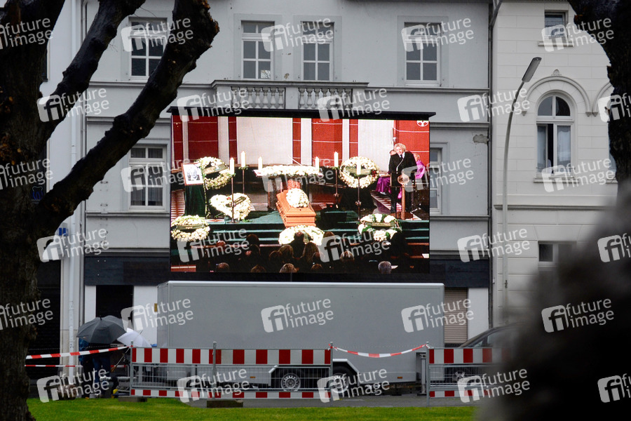 Sarg, Beerdigung, Trauerfeier, Gedenkfeier, Videoleinwand