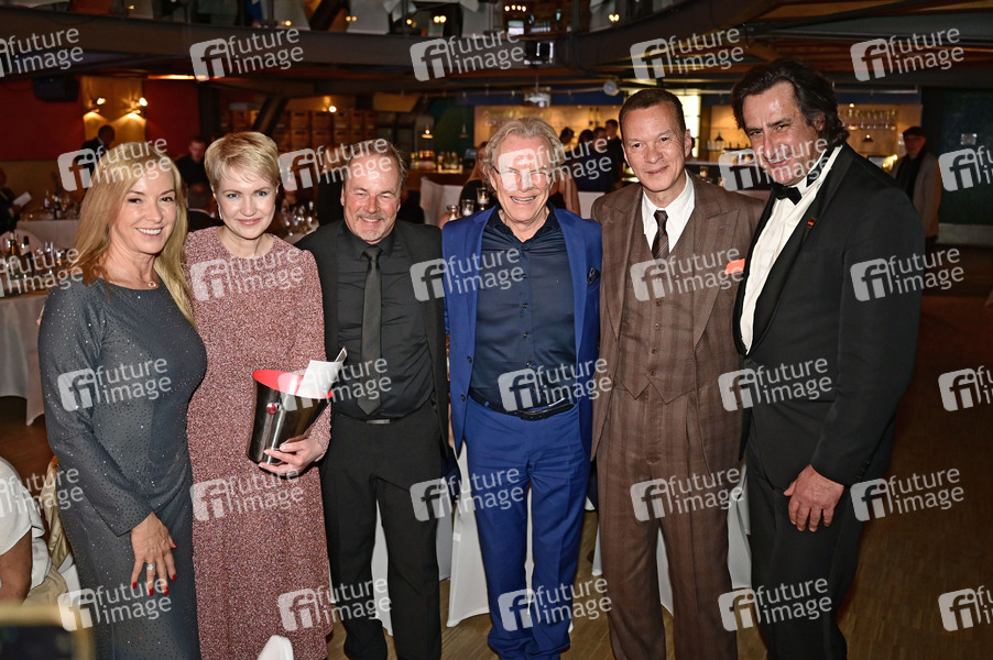 Gesine Lippert, Manuela Schwesig, Till Demtroeder, Wolfgang Lippert, Mario Hensel und Christian Schenk bei der 8. Windflüchter Charity Gala 2025 zu Gunsten der Stiftung 'Betroffen' im Störtebeker Brauquartier. Stralsund, 05.04.2025