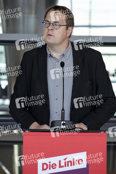 Sören Pellmann bei einem Pressestatement der Partei Die Linke im Reichstagsgebäude. Berlin, 20.05.2025