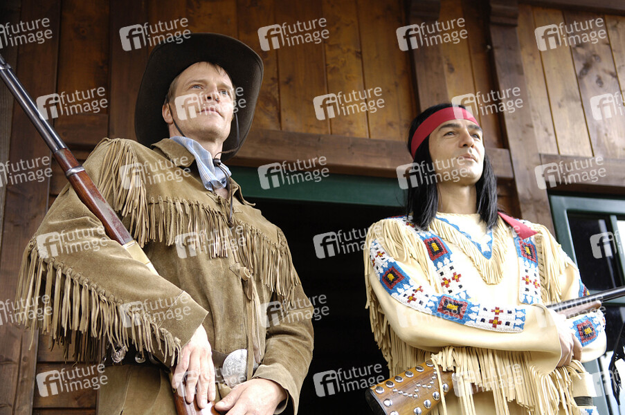 Pressetermin zu 'Winnetou I' der Karl May Freilichtspiele mit Erol Sander als Winnetou und Thorsten Nindel als Old Shatterhand im Indian Village, Bad Segeberg
