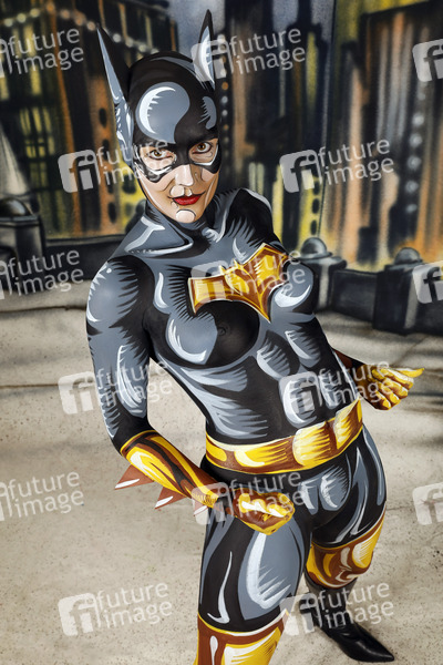 Projekt Farbkörper, Cosplay, Cosplayer, Bodypainting, Body-Painting, Make-up, Latexappliaktionen, Latexteile, Maskenbildnerei, Maskenbildner Körperkunst, Körperfarben, Farbe, Bemalung, Kunst, Malerei, Superheld, Superheldin, Comics, Comicfigur, Comicheft, DC, Batwoman, Batman, body painting, body art, superhero, super heroine, project color body, colors, colours, comic book