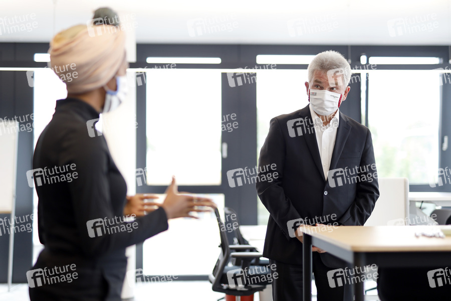 Maryline Ogboko und Andreas Pinkwart beim Besuch des Gateway Exzellenz Start-up Centers der Universität zu Köln. Köln, 04.06.2020