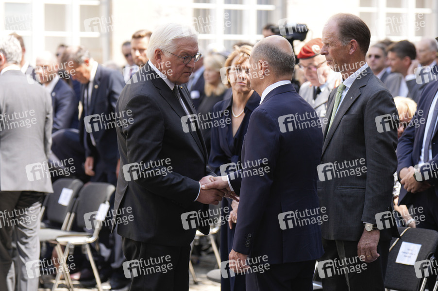 Frank-Walter Steinmeier und Olaf Scholz bei der Gedenkveranstaltung zum 80. Jahrestag des Aufstands gegen Nationalsozialistische Gewaltherrschaft mit Kranzniederlegung auf dem Ehrenhof des Bendlerblocks.Berlin, 20.07.2024