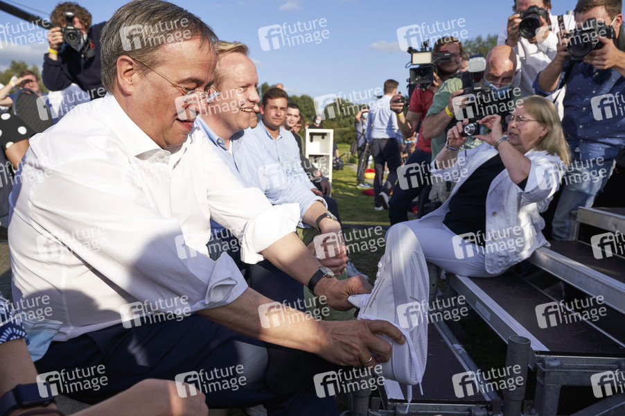 Armin Laschet und Tilman Kuban in der Wahlkampfarena der Jungen Union zur Bundestagswahl im Expowal. Hannover, 04.09.2021