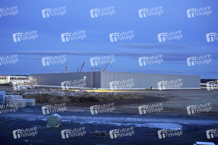 Elektroauto, Elektrofahrzeuge, PKW, Auto, Model Y, Model 3, Großfabrik, Automobilhersteller, Autobauer, Elektromobilität, umweltfreundlich, vorläufige Genehmigung, Batteriefabrik, Großprojekt, Investition, Baugenehmigung, Vorab-Genehmigung, E-Auto-Fabrik, Umwelt, Klimaschutz, Baustelle, Bauen, Baubranche, Bau-Branche, Bauarbeiten, Großbaustelle, Kran, Kräne, Baustelle, Wirtschaft, Autoproduktion