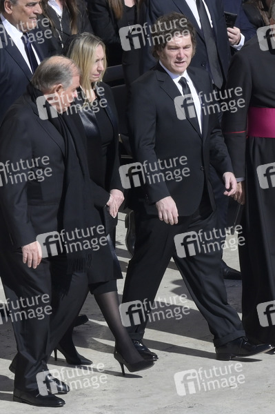 Karina Milei mit Bruder Javier Milei bei der Trauermesse für den verstorbenen Papst Franziskus auf dem Petersplatz. Vatikanstadt, 26.04.2025