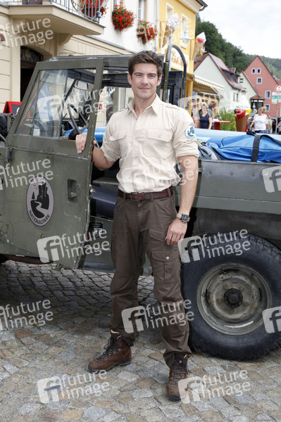 Philipp Danne am Set des ARD-Fernsehfilms 'Der Ranger - Paradies Heimat' auf dem Marktplatz. Stadt Wehlen, 14.08.2019