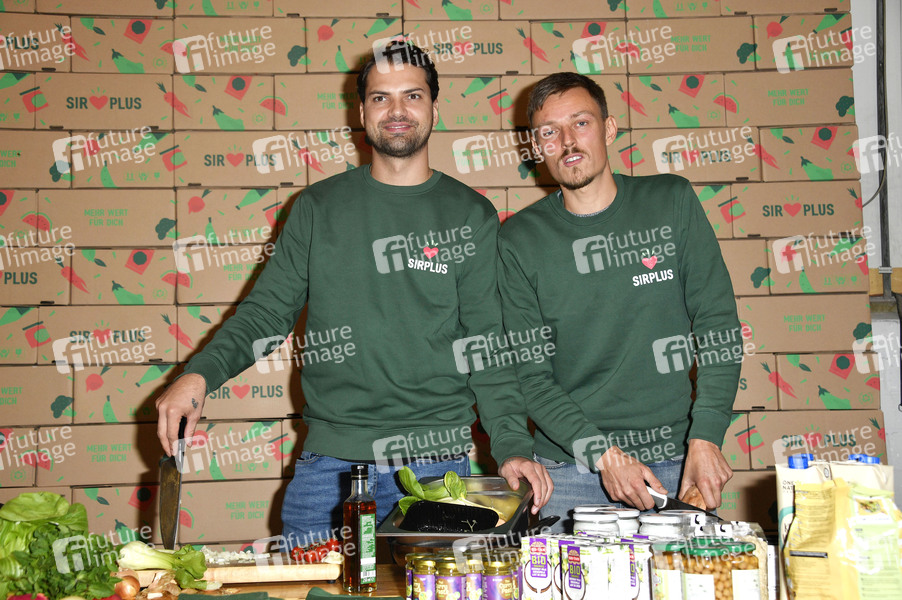 Jimi Blue Ochsenknecht und Raphael Fellmer beim Kochen mit geretteten Lebensmitteln von Sirplus anlässlich des Internationalen Tages gegen Lebensmittelverschwendung im Sirplus Warehouse. Berlin, 29.09.2022