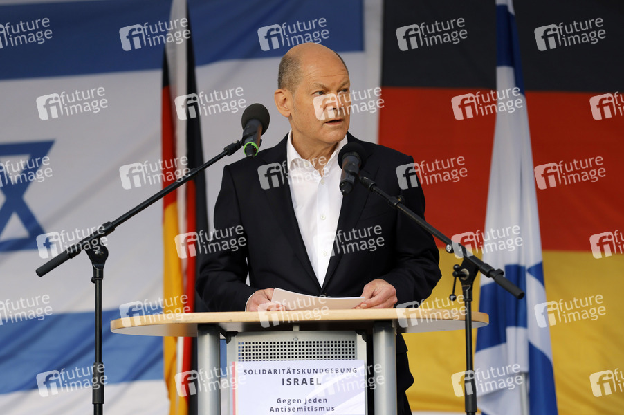 Olaf Scholz bei der Kundgebung zur Solidarität mit Israel am Brandenburger Tor. Berlin, 20.05.2021