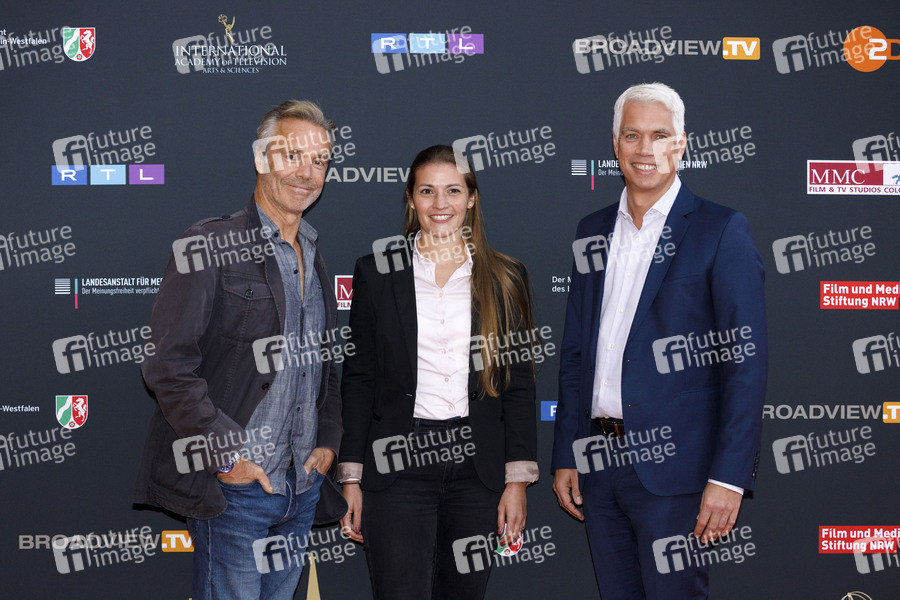 Hannes Jaenicke, Sandra Evening und Henning Tewes beim Kölner Emmy Cocktail 2021 anlässlich der 15. Kölner Jurysitzung des International Emmy auf Schloss Arff. Köln, 01.09.2021