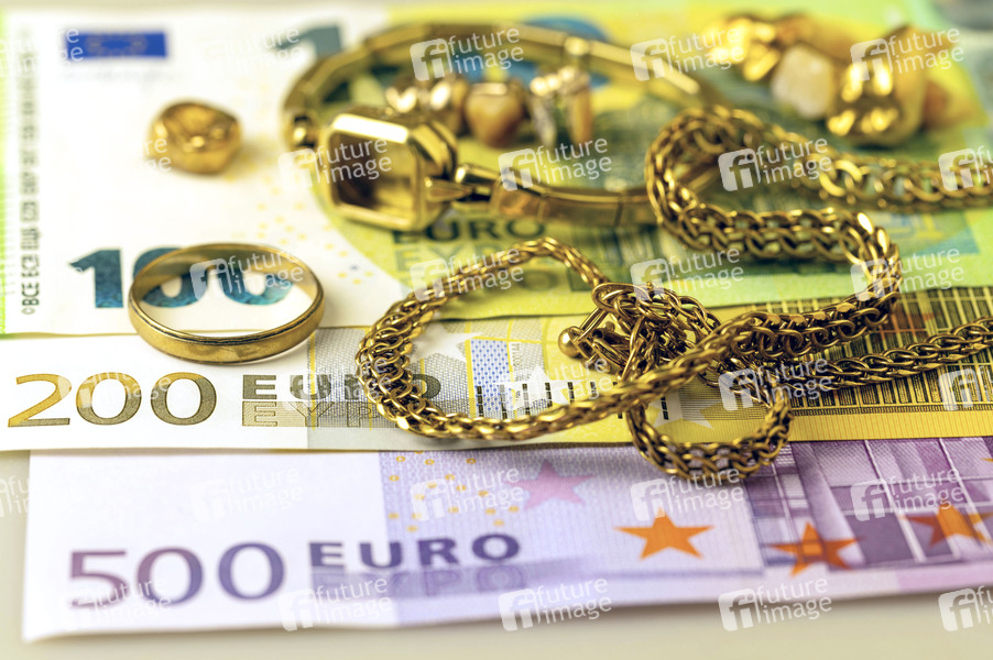 Gold, Barren, Münzen, Goldschmuck, Altgold, Zahngold, Bruchgold, Goldreste, Edelmetall, Feingoldgehalt, Ankaufswert, Ankaufswert, Goldankäufer, Edelmetall-Scheideanstalten, Wertermittlung, Feingehaltstempel, Bargeld, Barzahlung, Euro, Banknoten, Geldscheine, Symbolbild, Themenbild