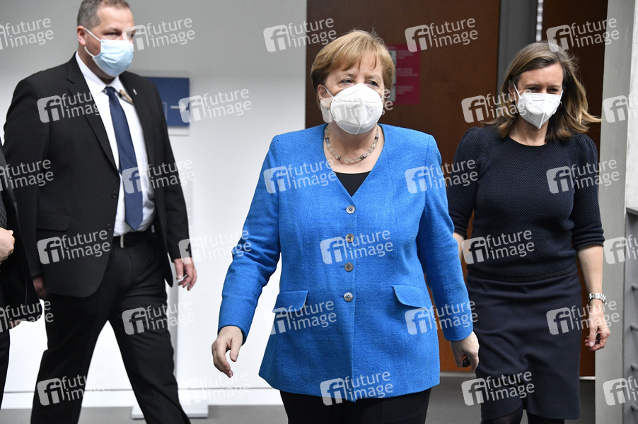 Angela Merkel bei der Ankunft zu ihrer Vernehmung als Zeugin in der 44. Sitzung des 3. Untersuchungsausschusses 'Wirecard' im Paul-Löbe-Haus. Berlin, 23.04.2021