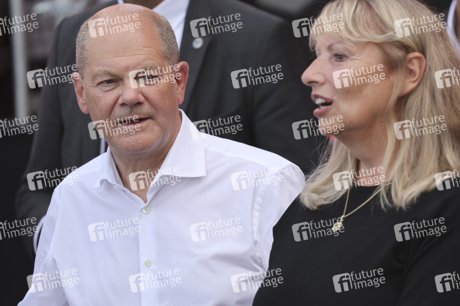 Olaf Scholz und Petra Köpping bei einer Wahlkampfveranstaltung der SPD zur Landtagswahl in Sachsen auf dem Schloßplatz. Dresden, 19.07.2024