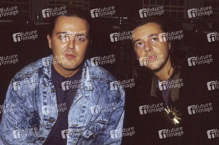 Curt Smith und Roland Orzabal von Tears for Fears bei einem Pressetermin zu ihrem Album 'The Seeds of Love' im HMV Store. London, 15.08.1990