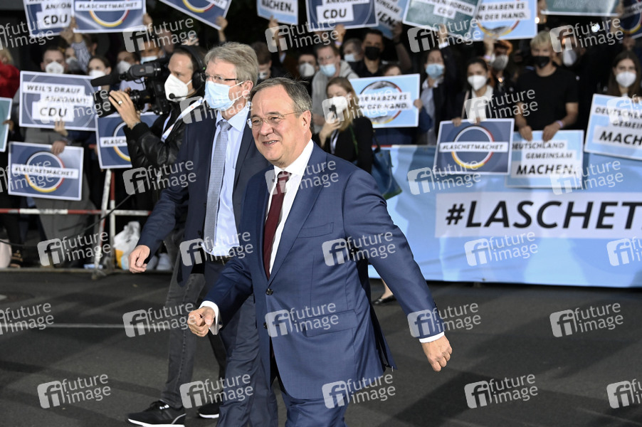 Armin Laschet beim 'Triell - Dreikampf ums Kanzleramt' von ARD und ZDF mit den Kanzlerkandidaten im Studio Berlin-Adlershof. Berlin, 12.09.2021