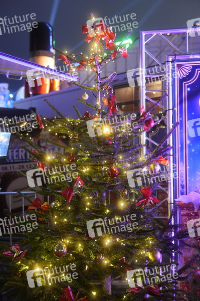 Weihnachtsbaum auf dem Weihnachtsmarkt 'Berliner Wintertraum' in der Schnellerstrasse im Bezirk Treptow-Köpenick. Berlin, 10.11.2024