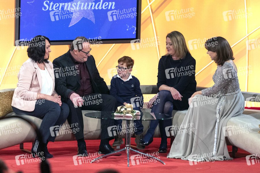 Nina und Dieter Bohner, Matthias, Julia Lemmer und Sabine Sauer bei Projekt Talk: 'Herzkranke Kinder' bei der Großen Sternstunden-Gala 2019 in der Frankenhalle. Nürnberg, 13.12.2019