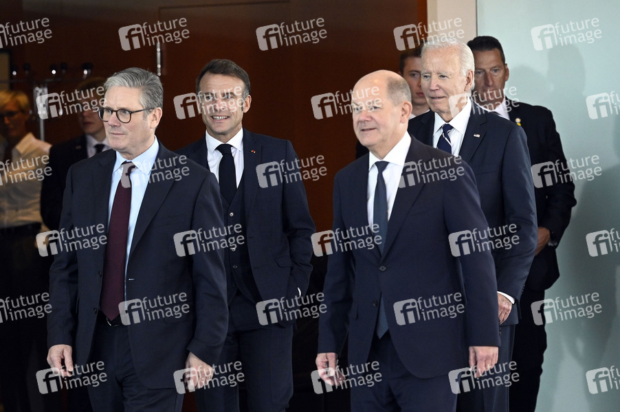 Keir Starmer, Emmanuel Macron, Olaf Scholz und Joe Biden beim QUAD Treffen im Bundeskanzleramt. Berlin, 18.10.2024