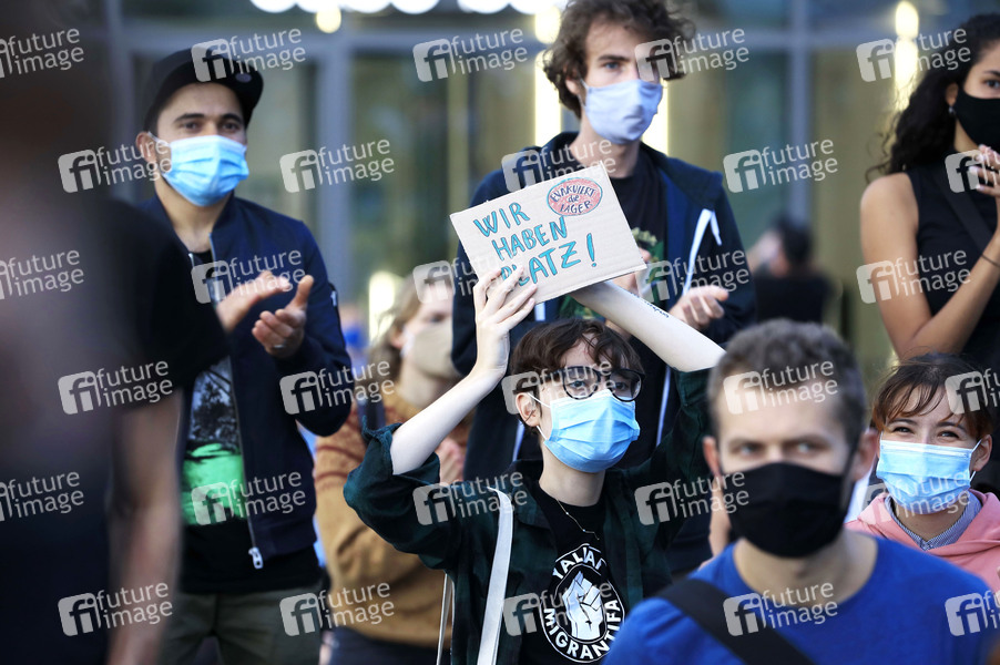 Tausende Demonstranten fordern die sofortige Aufnahme von Flüchtlingen aus dem von einem Grossbrand zerstörten griechischen Flüchtlingslager Moria (Lesbos) bei einer Demonstration unter dem Motto 'Evakuiert die Lager, denn #WirHabenPlatz' vom Bündnis 'Seebrücke' am Hauptbahnhof. Berlin, 09.09.2020