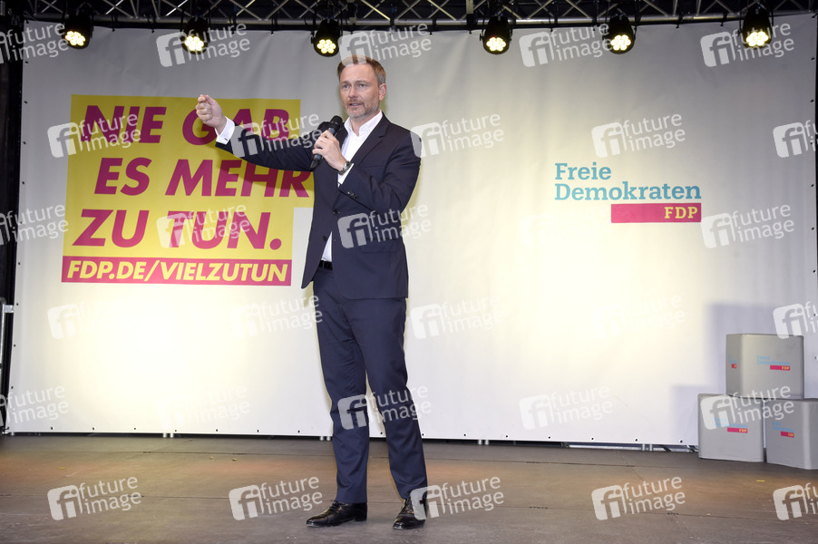 Christian Lindner bei einer Wahlkampfveranstaltung der FDP auf dem Marienplatz. München, 21.09.2021
