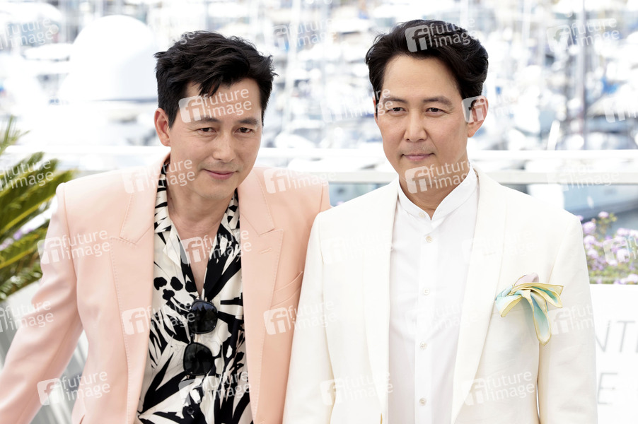 Jung Woo-sung und Lee Jung-jae beim Photocall zum Kinofilm 'Hunt / Heon-teu' auf dem Festival de Cannes 2022 / 75. Internationale Filmfestspiele von Cannes im Palais des Festivals. Cannes, 19.05.2022