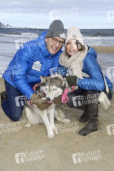 Gerit Kling mit Ehemann Wolfram Becker beim Baltic Lights 2023 Charity-Hunderennen zu Gunsten der Welthungerhilfe zwischen der Seebrücke Ahlbeck und der Seebrücke Heringsdorf. Heringsdorf, 04.03.2023