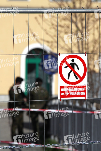 Polnische Soldaten am gesperrten Grenzübergang