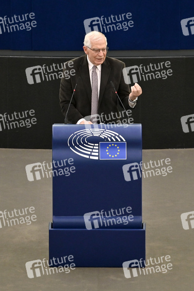 Josep Borrell i Fontelles, Krieg, Russland, Ukraine, Kriegsverbrechen, Europäisches Parlament, Plenum, Plenartagung, Plenardebatte, Plenarsitzung, Debatte, Rede, Politik, Strasbourg, Strassburg, Europaparlament, Europa-Politik, EU-Abgeordnete, EU-Parlament, EP, Parlament der Europäischen Union, European Parliament, European Union, Parlamentum Europaeum, MdEP, Mitglied des Europäischen Parlaments, Politiker, Spanien, Partit dels Socialistes de Catalunya, PSC, Hoher Vertreter der EU für Außen- und Sicherheitspolitik
