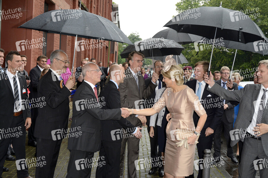 Königin Maxima der Niederlande und König Willem-Alexander der Niederlande bei ihrer Ankunft bei der Firma MMID vor dem Gebäude G7 auf der Katernberger Strasse. Essen, 27.05.2014