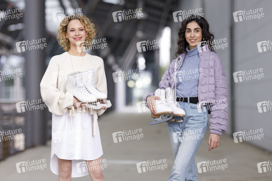 Greta Voss und Leyla Öztürk in 'Alles was zählt', Prominenz, Celebrity, Celebrities, Dreharbeiten, Filmset, Location, Settermin, Unterhaltung, Entertainment, Photocall, Fotocall, Kultur, TV, Fernsehen, TV-Serie, Fernsehserie, AWZ, Seifenoper, Daily Soap, Schauspielerinnen
