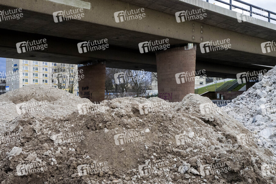 Straßenbrücke, Kulturdenkmal, Elbbrücke, Balkenbrücke, Spannbetonbrücke, Erbaut in den 1970er Jahren, Innere Altstadt, Innere Neustadt, Pirnaische Vorstadt, Carola von Wasa-Holstein-Gottorp, Namensgeber, Brücke, Einsturz, Elbe, Carolabrücke, Abriss, Brücke, Elbe, Bauarbeiten, Bagger