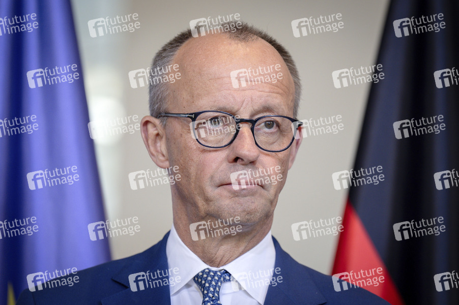 Friedrich Merz bei der Pressekonferenz im Anschluss an den Stahlgipfel im Bundeskanzleramt. Berlin, 06.11.2025