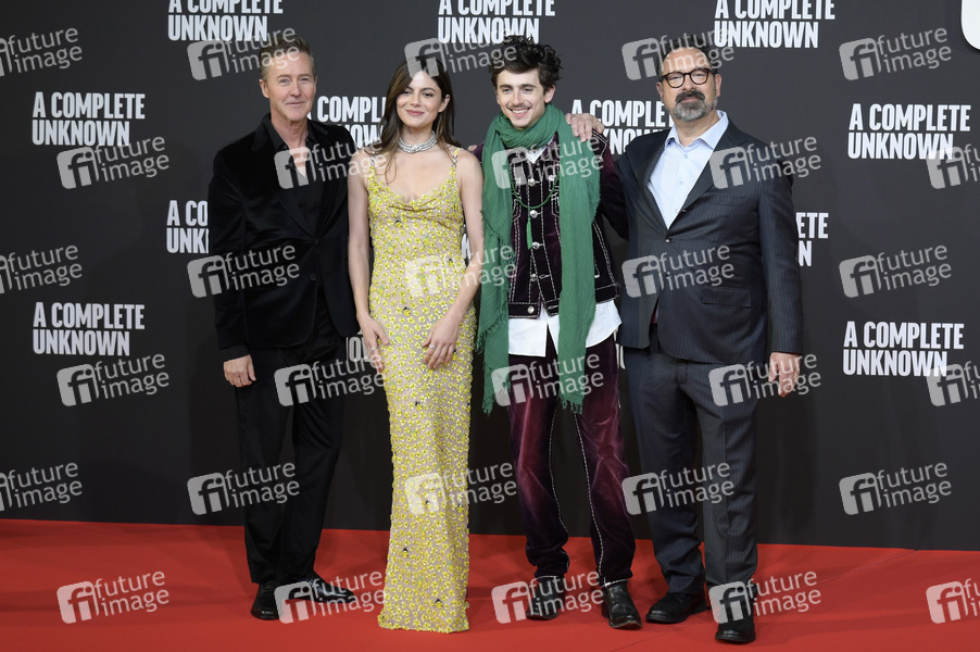 Edward Norton, Monica Barbaro, Timothee Chalamet und James Mangold bei der Premiere des Kinofilms 'A Complete Unknown' im Auditorium Parco della Musica . Rom, 17.01.2025
