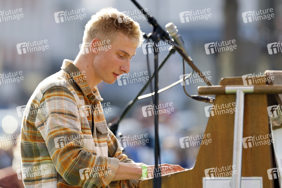 Musiker, Pianist, Klavierspieler, Piano, Klavier, Bündnis 90/Die Grünen, Rede, Wahlkampf, Auftritt, Bühne, Partei, Bundestagswahl, Wahl 2021, Wahlen, Umweltpolitik, Umwelt, Klimawandel, Klimapolitik, Wahlkampfveranstaltung, Parteienwerbung, Kampagne