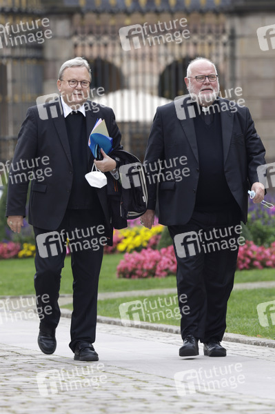 Dr. Franz-Josef Hermann Bode (stellvertretender Vorsitzender der Deutschen Bischofskonferenz, Bischof von Osnabrueck, Vorsitzender Pastoralkommission) und Reinhard Kardinal Marx (Erzbischof von München und Freising) auf dem Weg zum Pressetermin zur Herbst-Vollversammlung der Deutschen Bischofskonferenz im Stadtschloss. Fulda, 20.09.2021