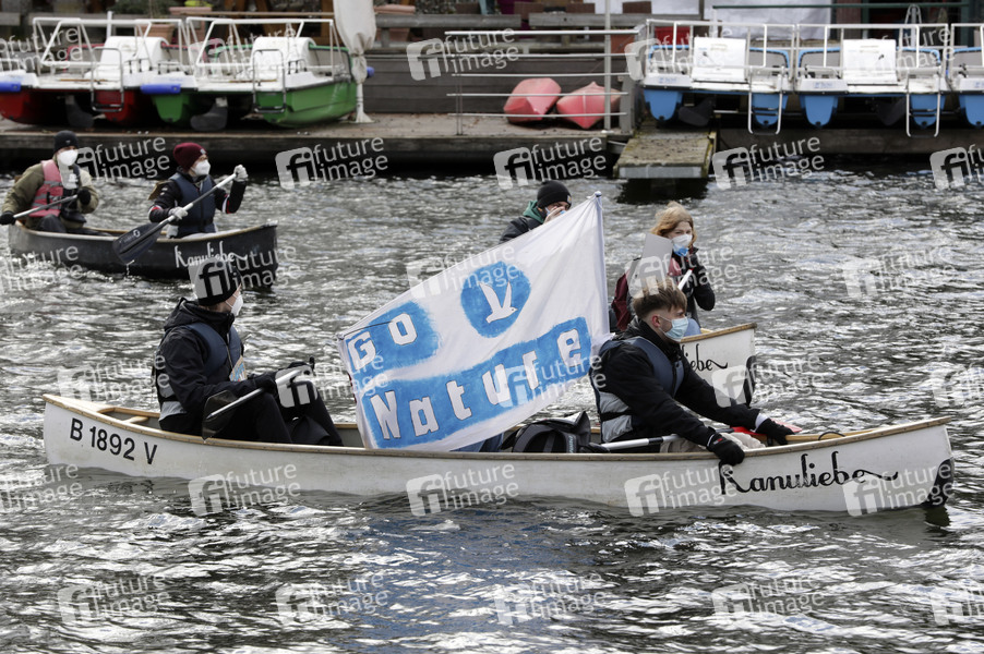 Am Freitag finden mehrere Demonstrationen zum globalen Klimastreik von Fridays for Future in Berlin statt. Unter dem Motto #AlleFür1Komma5 startet eine Bootsdemo auf der Spree von der Insel der Jugend zur Oberbaumbrücke. Berlin, 19.03.2021