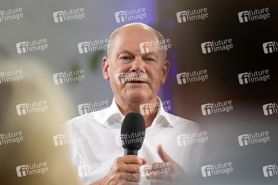 Olaf Scholz beim Kanzlergespräch mit Bürgern in der ufaFabrik. Berlin, 04.09.2024
