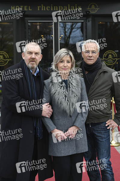 Dietmar Bär, Ulrike Krumbiegel und Klaus J. Behrendt beim Fototermin am Set des 80. Tatorts aus Köln 'Tatort - Der Tod der Anderen' am Hotel Rheinpalais. Köln, 27.11.2019