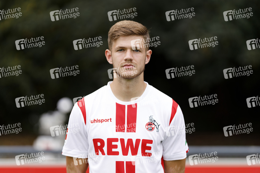 Jan Thielmann beim Fototermin im Rahmen des Media Day des 1. FC Köln mit den neuen Trikots in der Saison 2020/2021 am Geißbockheim. Köln, 14.08.2020