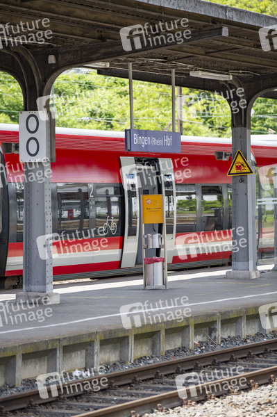 Bingen (Rhein) Hauptbahnhof als Fernverkehrsbahnfof in Rheinland-Pfalz ist ein Inselbahnhof und zugleich Durchgangsbahnhof für Intercity-, Eurocity-, Regionalexpress- und Regionalbahnzüge. Bingen, 31.05.2021