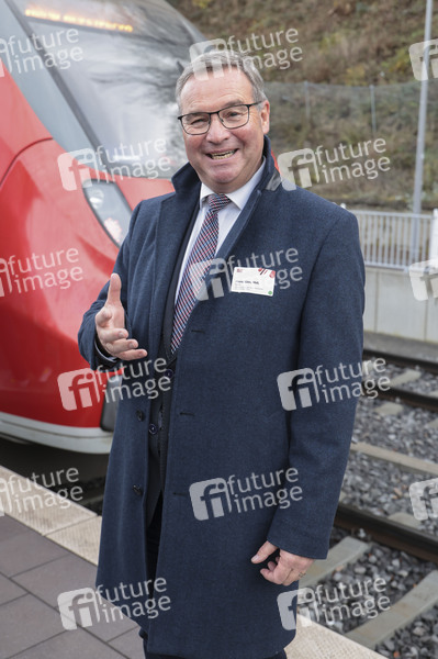 Horst Gies bei der Inbetriebnahme der neuen Ahrtalbahn mit Sonderfahrt von Dernau nach Altenahr. Altenahr, 12.12.2025