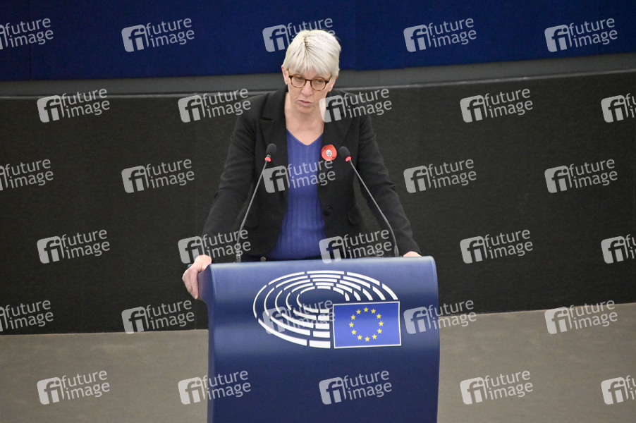 Caroline Roose bei einer Plenartagung über den Schutz von Tieren beim Transport im Plenarsaal des Europäischen Parlaments. Straßburg, 20.01.2022