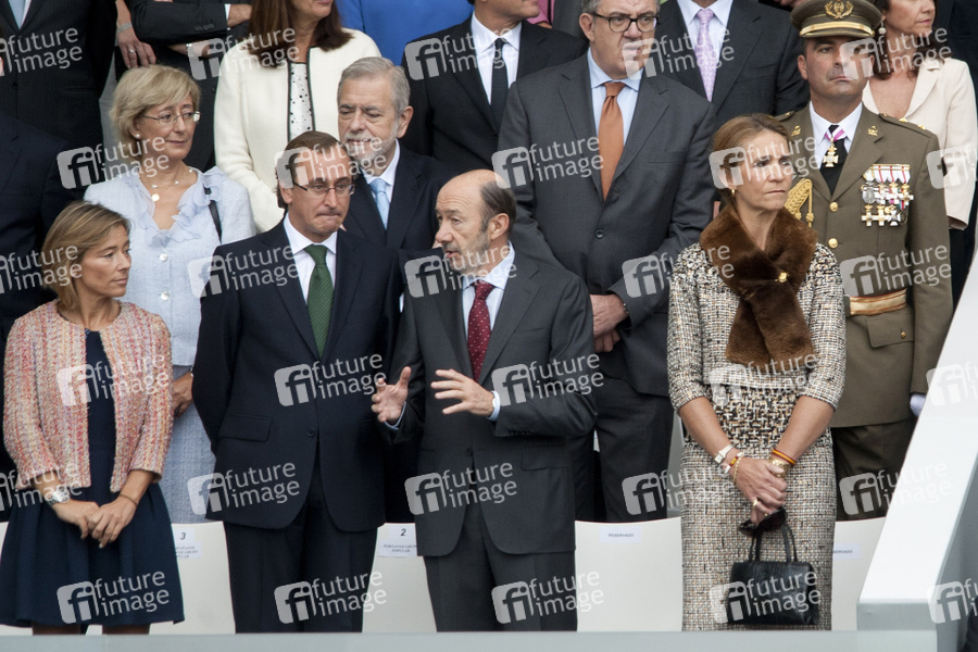 Die spanische Königsfamilie bei der Hommage an die Nationalflagge mit Militärparade am Palacio Real, Madrid